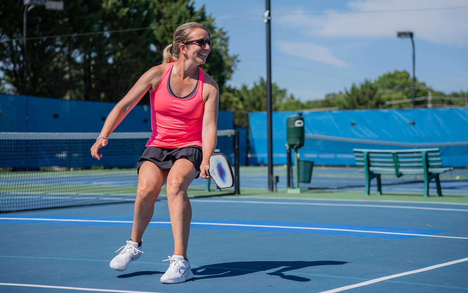 Three hard courts and three clay courts are open seasonally, all with lighting to allow for play after dark.